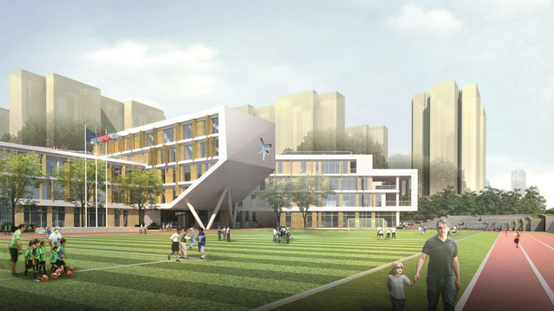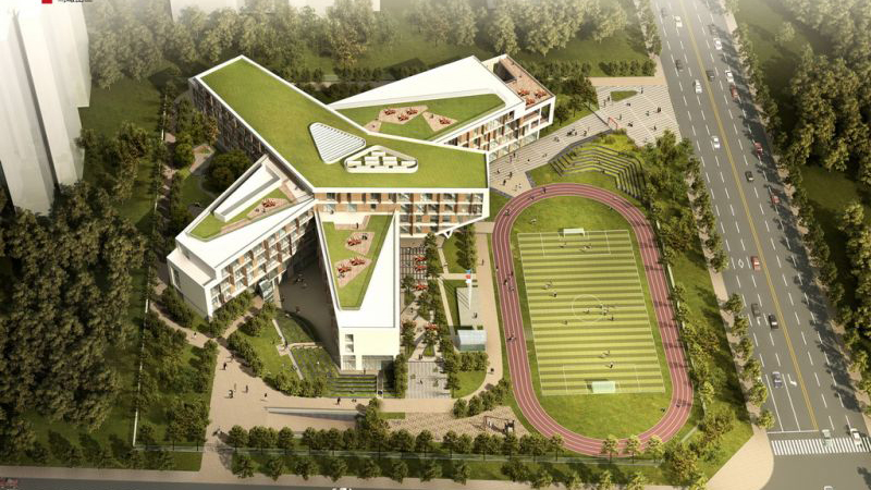 小学建设净用地18182.46㎡,总建筑面积23499.66㎡,5层,集行政、实验、教学、体育等设置在一栋建筑内。在星形的建筑外部形成各不同的活动区域。风雨操场及食堂设置在负一层,通过一个下沉广场与室外联通,尽量降低对教学楼的影响。结构形式采用框架结构,局部钢结构。
